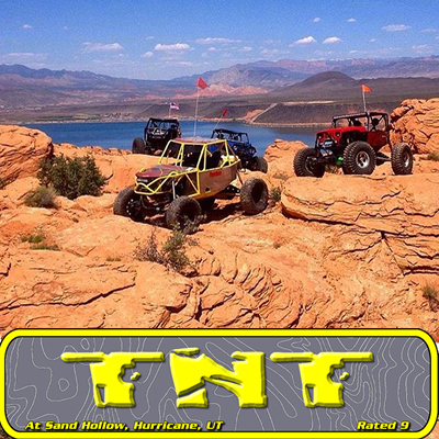 TNT begins in a sandy wash by Sand Hollow Reservoir. Lower chain follows this wash. It is full of obstacles that can get ugly real fast if you are not careful. The wash narrows into a tricky series of falls and around a bend that requires maneuvering your rig by a massive boulder. Then it opens up and you begin making your way out of the wash. TNT presents just as many intimidating challenges to both the rig and its driver. You will almost always receive some "love bites" from the rocks. Rigs need to be, at a minimum, locked front and rear with at least 35" tires. Chain Reaction has an extremely high possibility of body damage and/or mechanical breakdown.